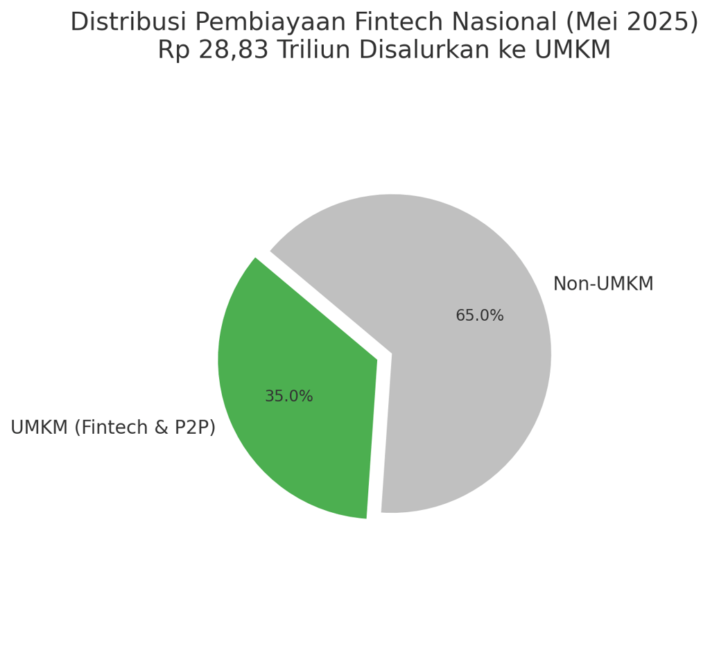 Menurut data OJK per Mei 2025, dana yang disalurkan lewat fintech dan P2P lending untuk sektor UMKM sudah tembus Rp 28,83 triliun — sekitar 35% dari total pembiayaan fintech nasional.